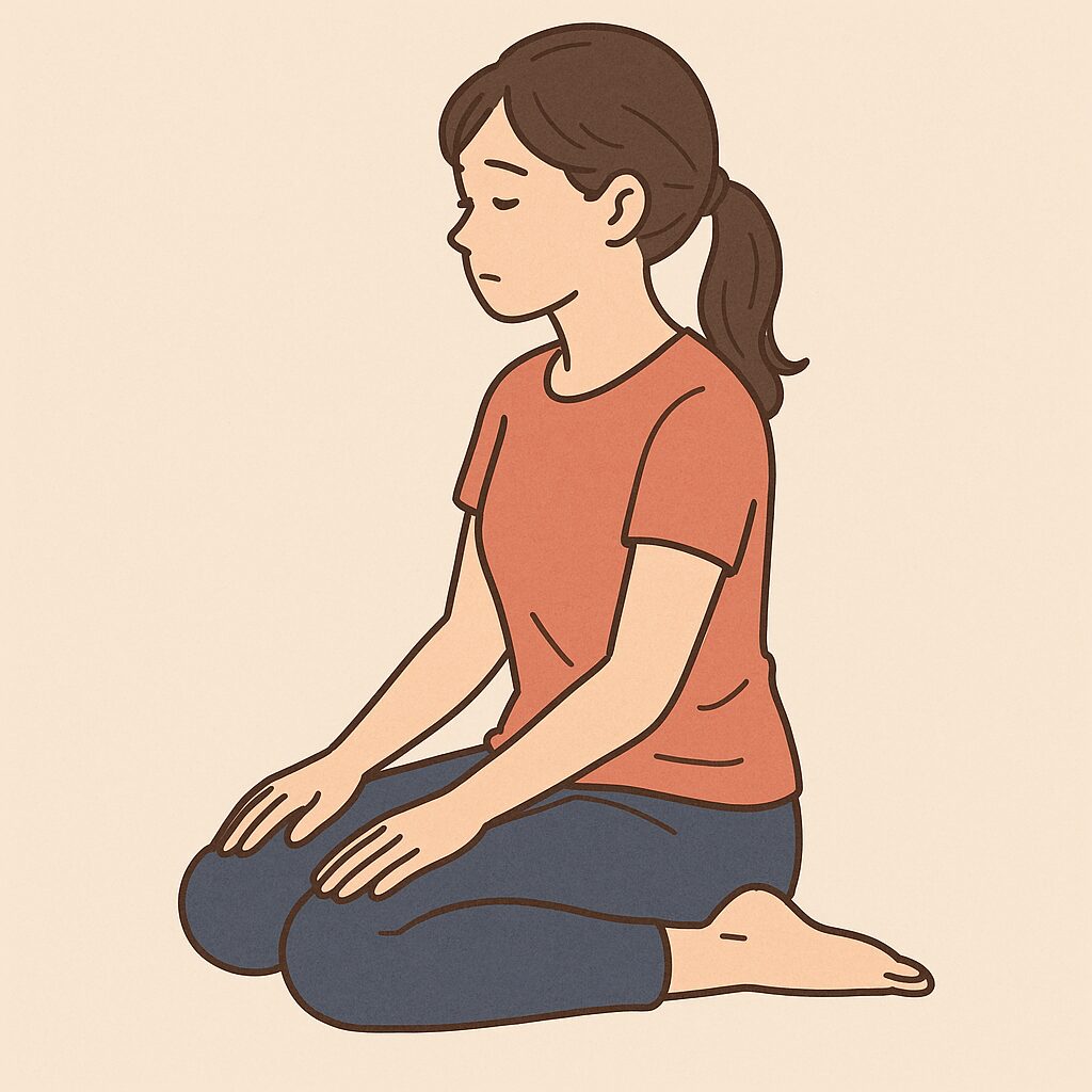 「ぺたんこ座り」とは、両ひざを外側に開いて足先をお尻の横に置き、体をぺたんと床に下ろした座り方のことを指します。