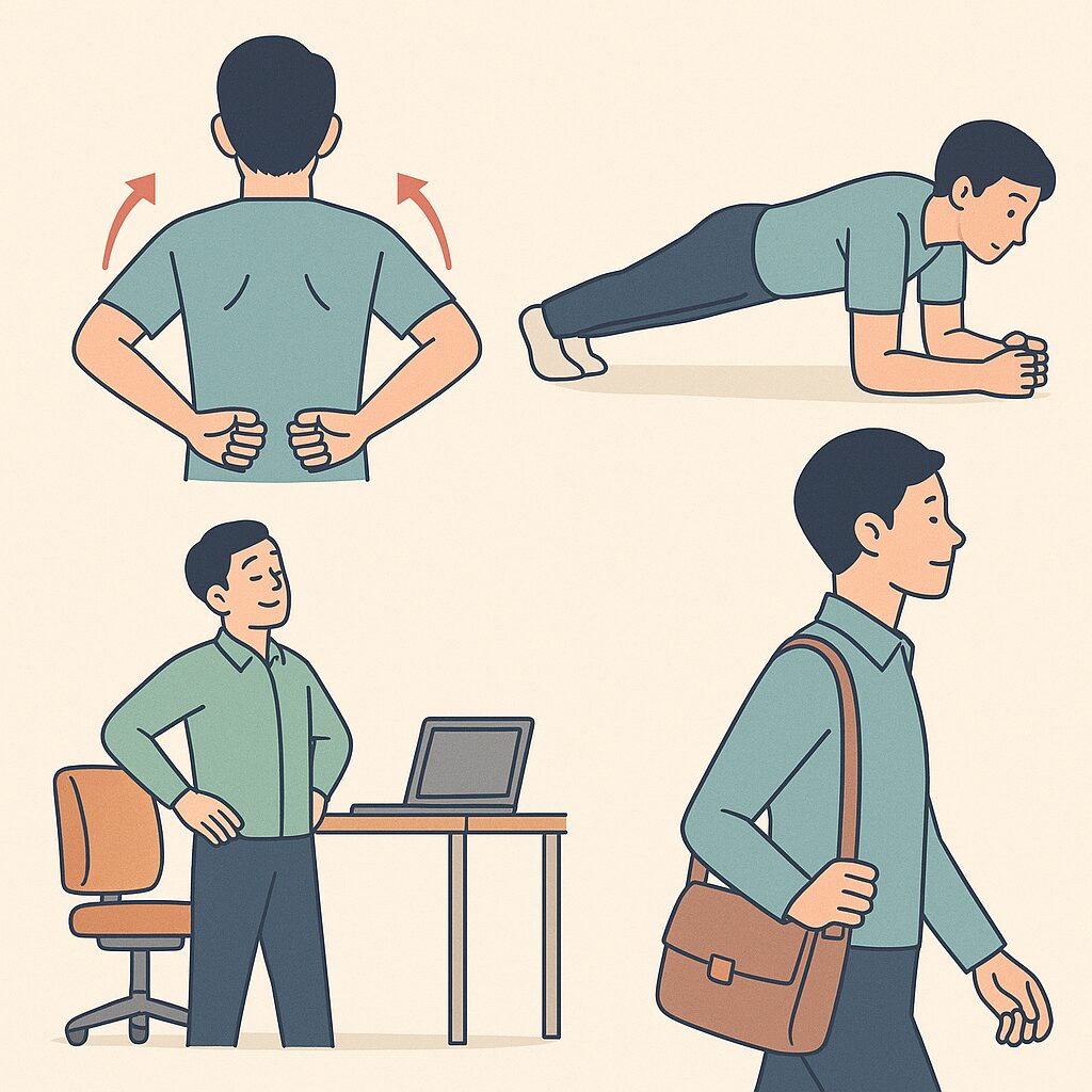 バッグは左右の肩で交互にかける、スマホは目線の高さで持つなど、日常の小さな意識が再発防止につながります。