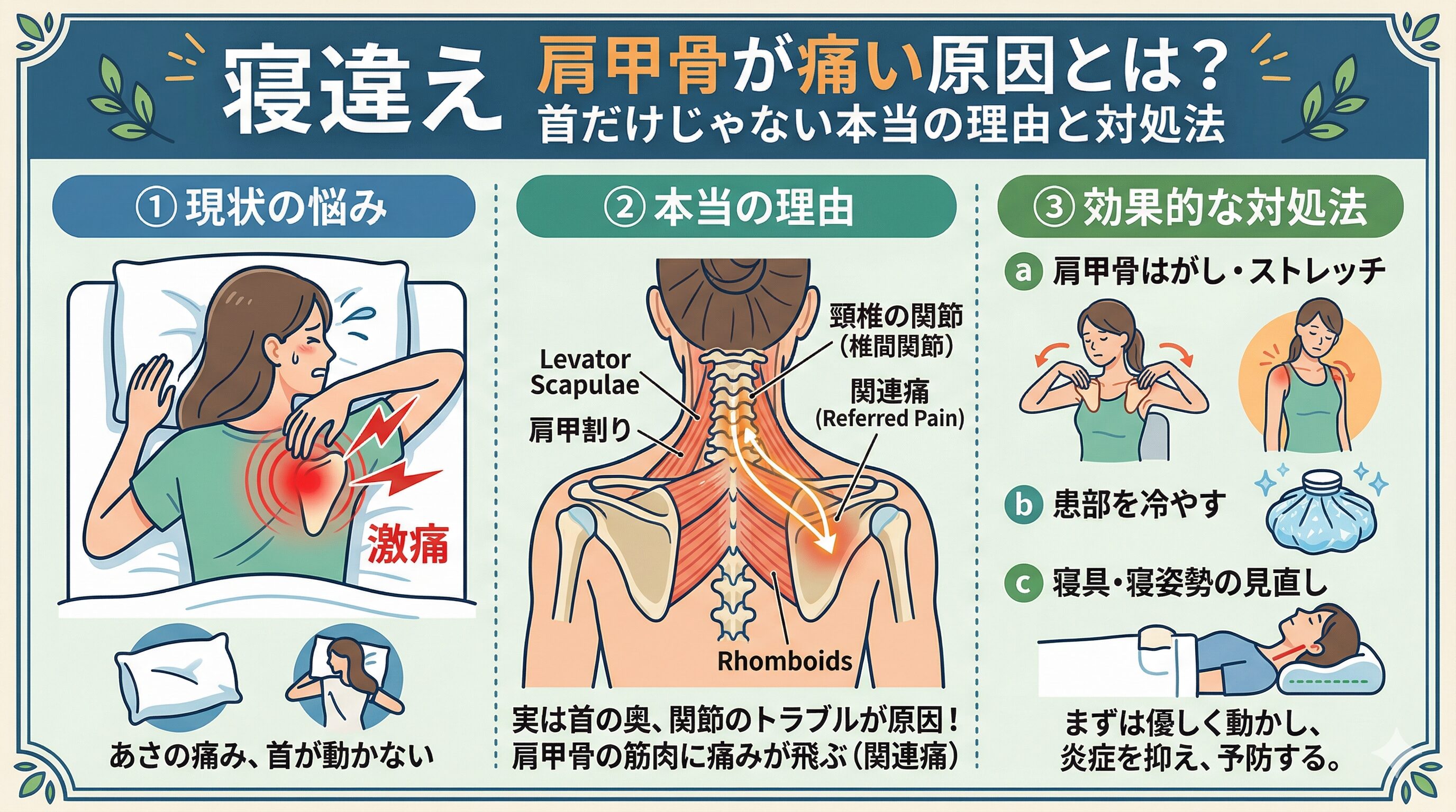 寝違えで肩甲骨が痛くなるのはなぜ?原因を解説