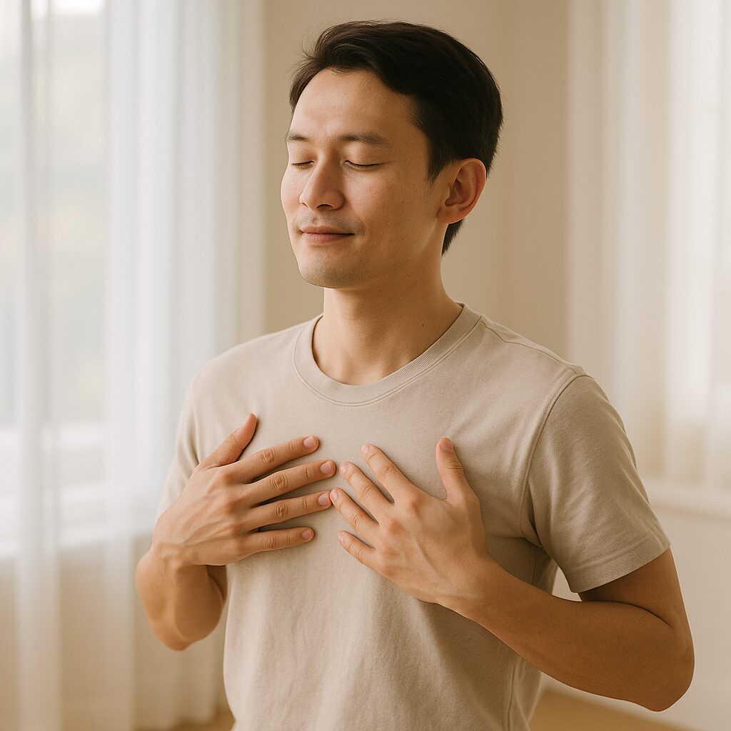 まずは「胸の奥にある小さな筋肉が動いている」と感じるだけでもOKです。