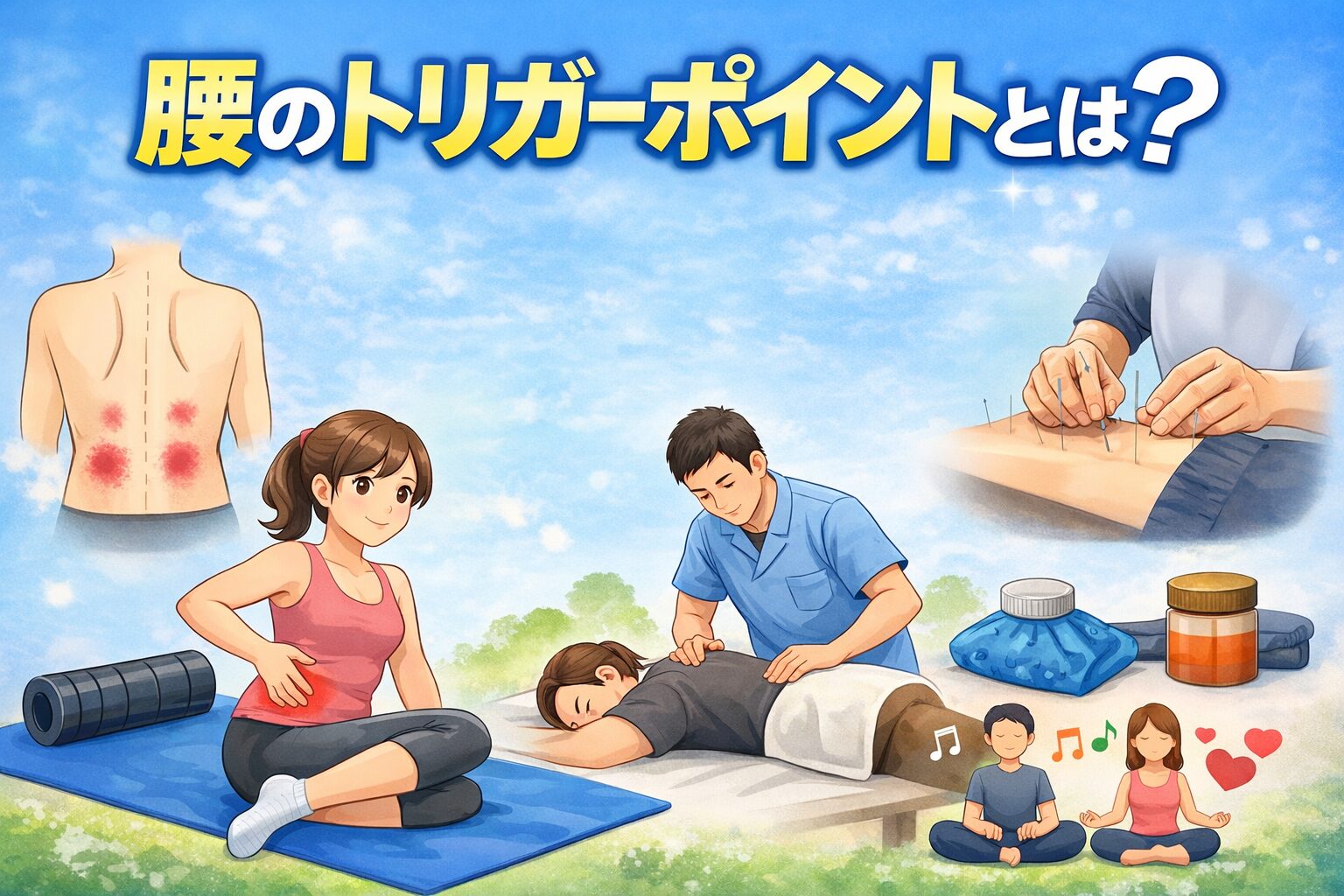 鍼灸は、トリガーポイントに対する治療法として古くから用いられています。鍼をトリガーポイントに刺すことで、血流を促進し、筋肉の緊張を解消します。また、鍼灸治療は、痛みの感覚を緩和する神経伝達物質の分泌を促すとも言われています。さらに、鍼灸の効果は科学的にも証明されており、神経の働きを改善し、痛みを軽減させる手助けをします。多くの患者さんが痛みの改善を感じており、リラックス効果も得られると言われています【⭐︎参考記事】https://fujisawaseitai.com/case-blog/%E8%85%B0%E7%97%9B%E3%81%AE%E6%99%82%E3%81%AB%E3%81%BB%E3%81%90%E3%81%99%E3%81%A8%E8%89%AF%E3%81%84%E3%83%88%E3%83%AA%E3%82%AC%E3%83%BC%E3%83%9D%E3%82%A4%E3%83%B3%E3%83%88%E3%81%AF%EF%BC%9F%E8%87%AA/
