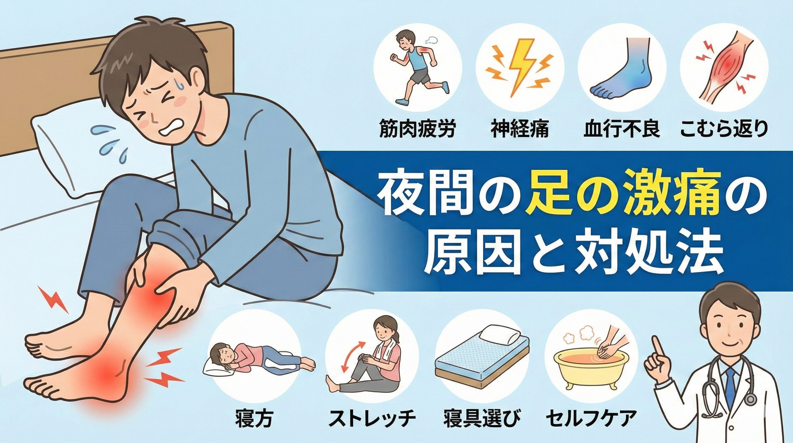 こうした感覚が重なる場合、神経が関係している可能性があると言われています。坐骨神経まわりのトラブルや、睡眠中の違和感が強いケースでは、専門分野でのチェックがすすめられることもあるそうです。